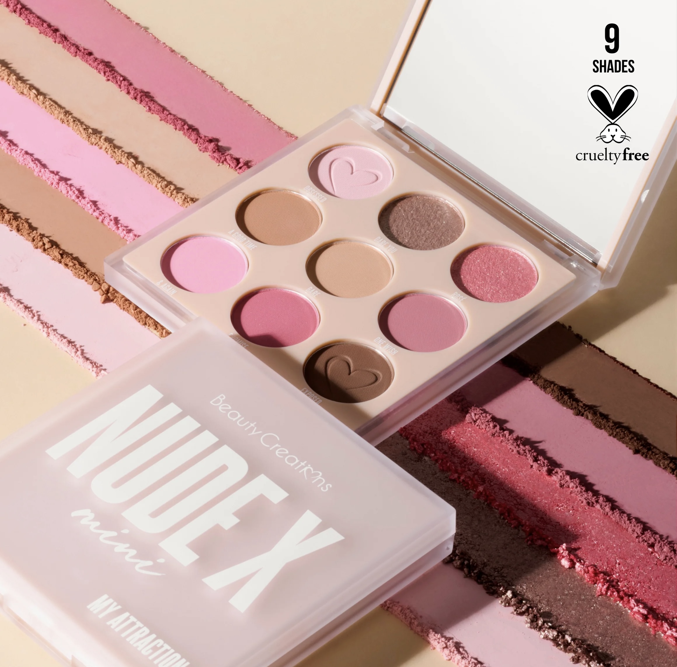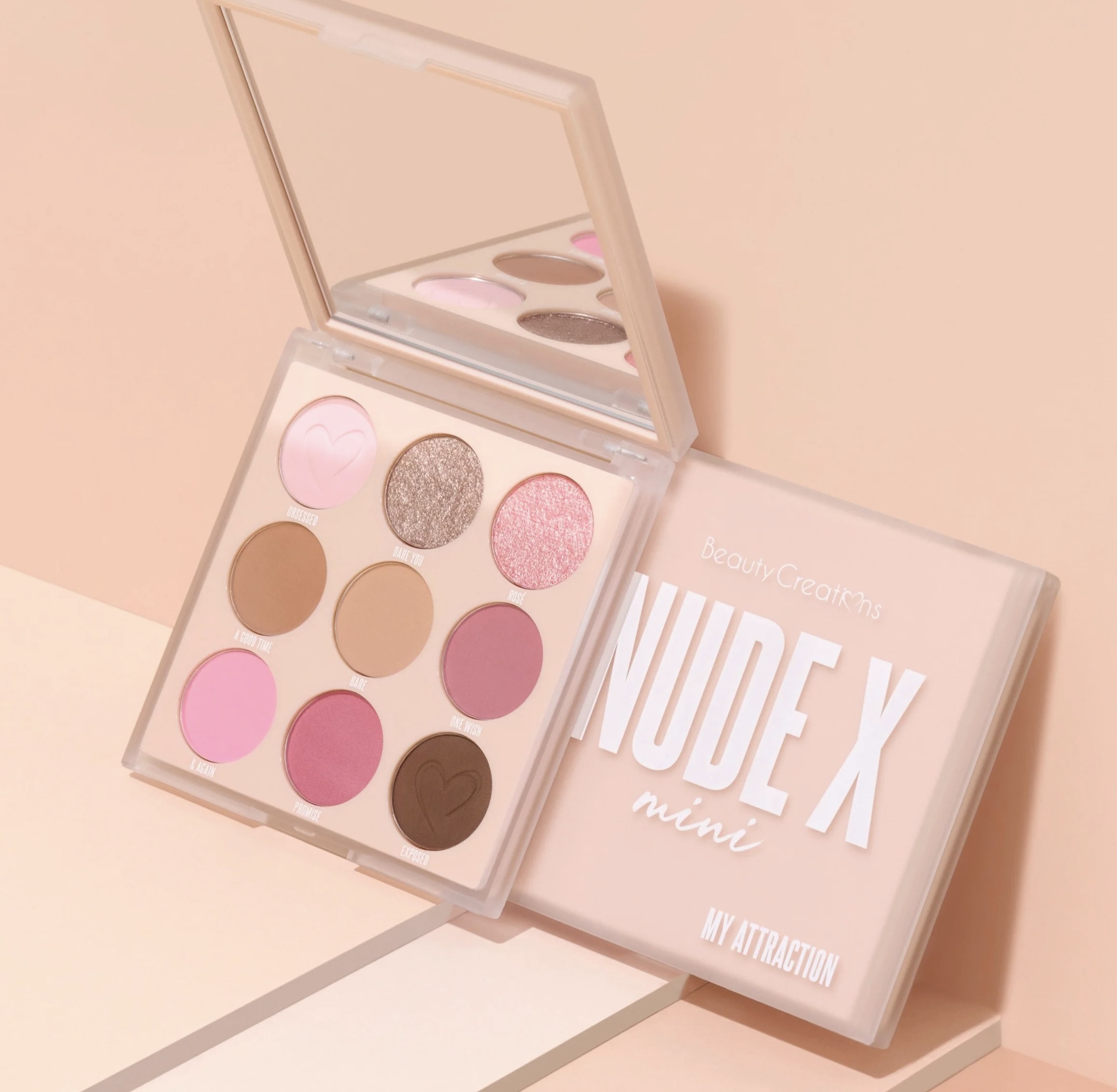 Серия мини палеток теней NUDE X от бренда Beauty Creations. My Attraction — это 9 высокопегментированных, базовых оттенков. Тени для век с сияющими насыщенными оттенками хорошо наносятся пальчиком, кисточкой, не осыпаются, позволяя создать безупречный образ. Идеально подходит для смешивания цветов. Шелковистая текстура для век легко поддаются растушёвке. Мерцающие тени создадут влажное естественное сияние, а матовые и нюдовые оттенки подчеркнут вашу естественную красоту.