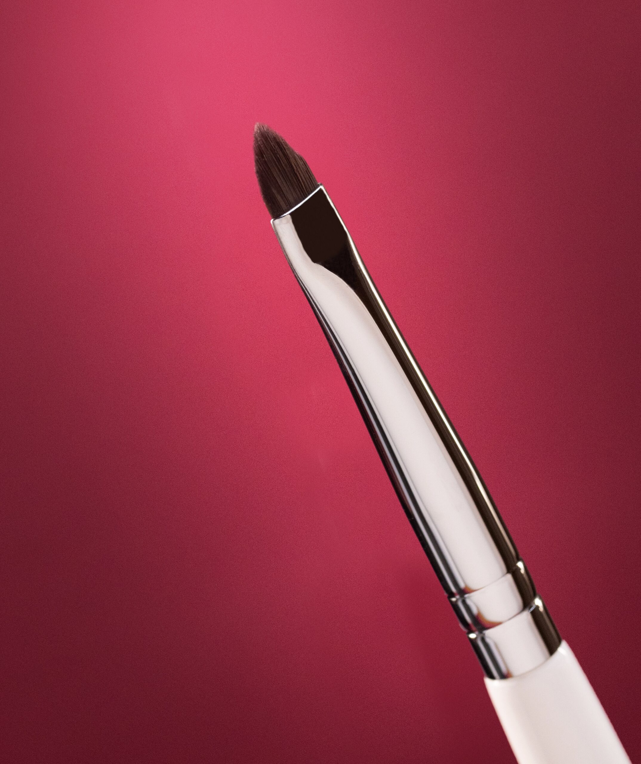 Плоская кисть с заостренным кончиком позволяет создавать плавные ровные линии в макияже глаз и губ.