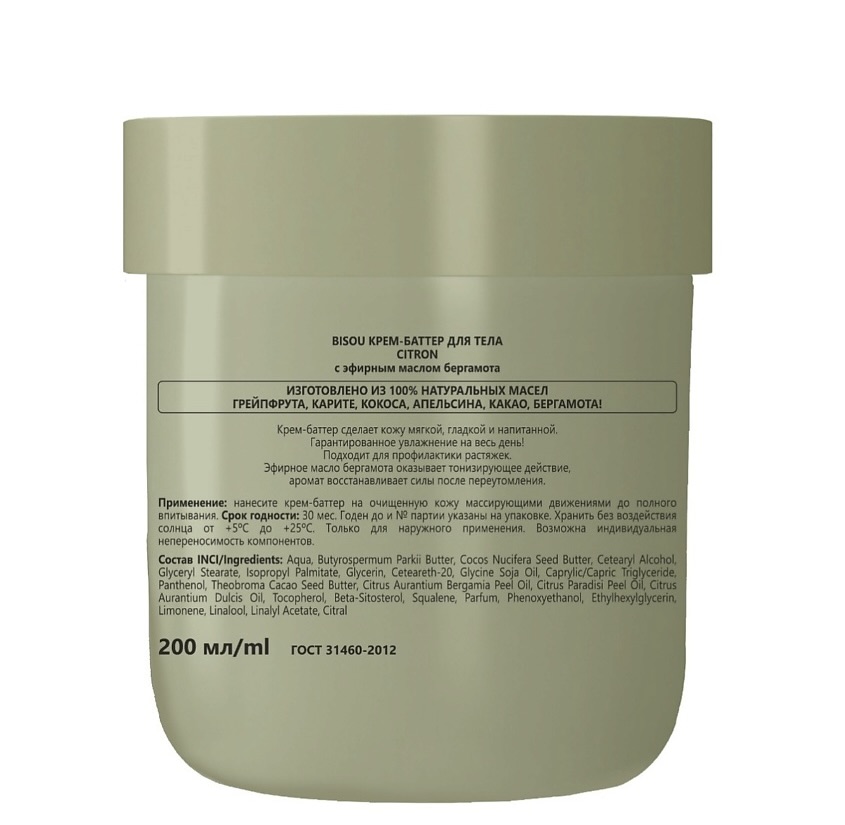 Bisou крем-баттер для тела с эфирным маслом бергамота Citron