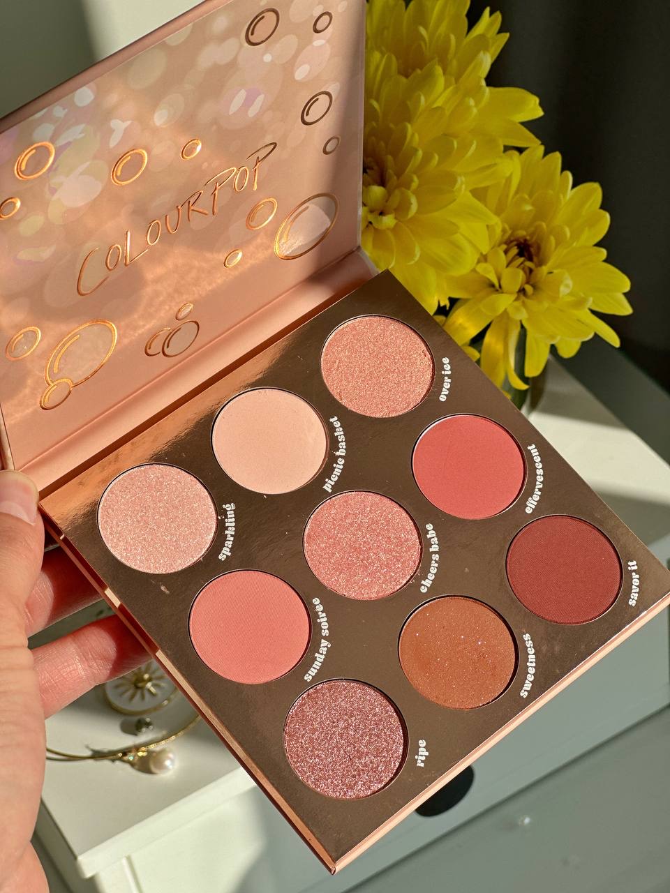 Палетка содержит оттенки в сверкающей смеси розовых и нейтральных оттенков с мерцающим металлическим и кремовым матовым финишем.