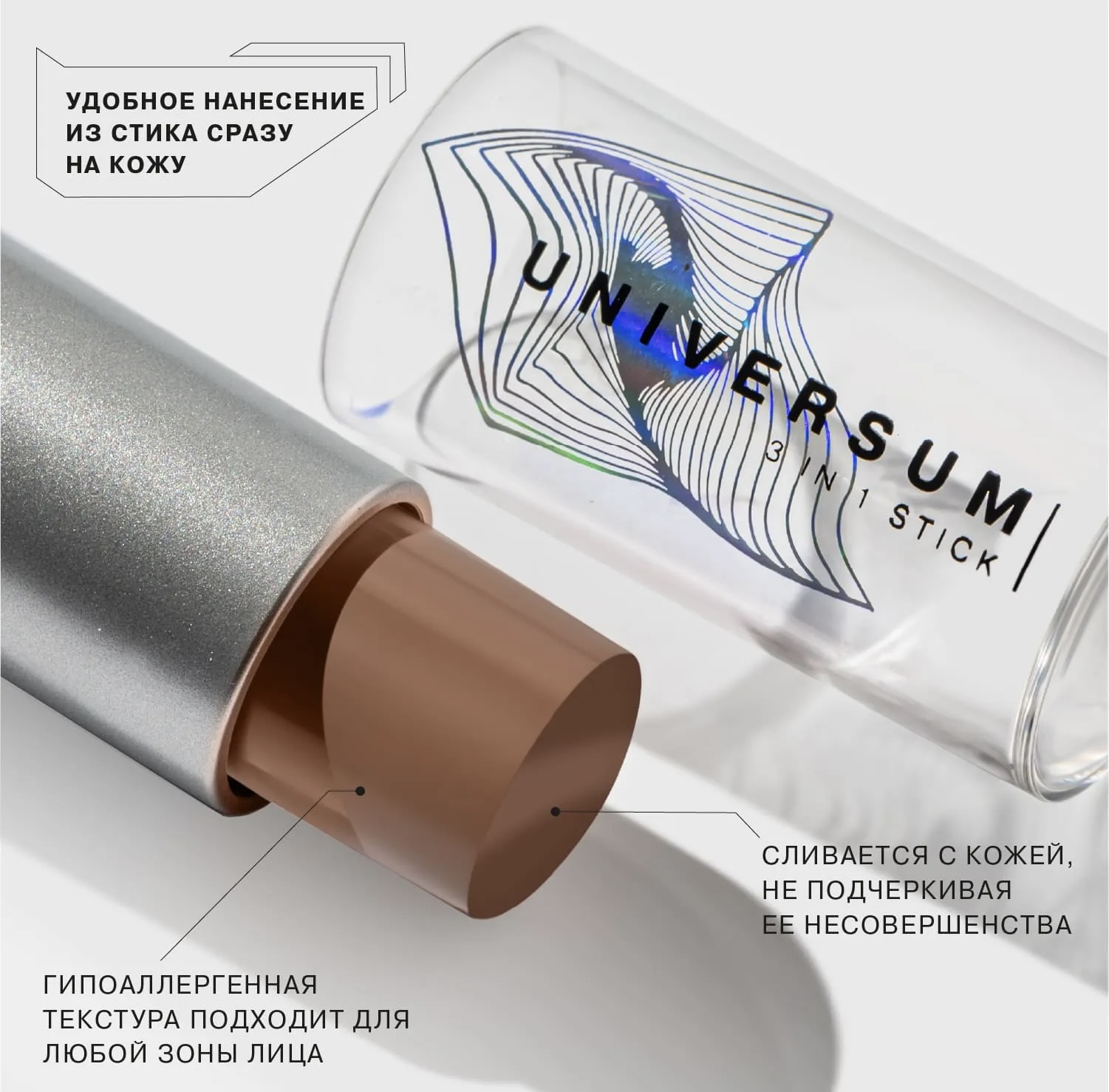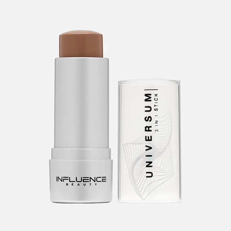 Этот универсальный стик 3-в-1 UNIVERSUM от INFLUENCE BEAUTY можно использовать для макияжа глаз, лица и губ.