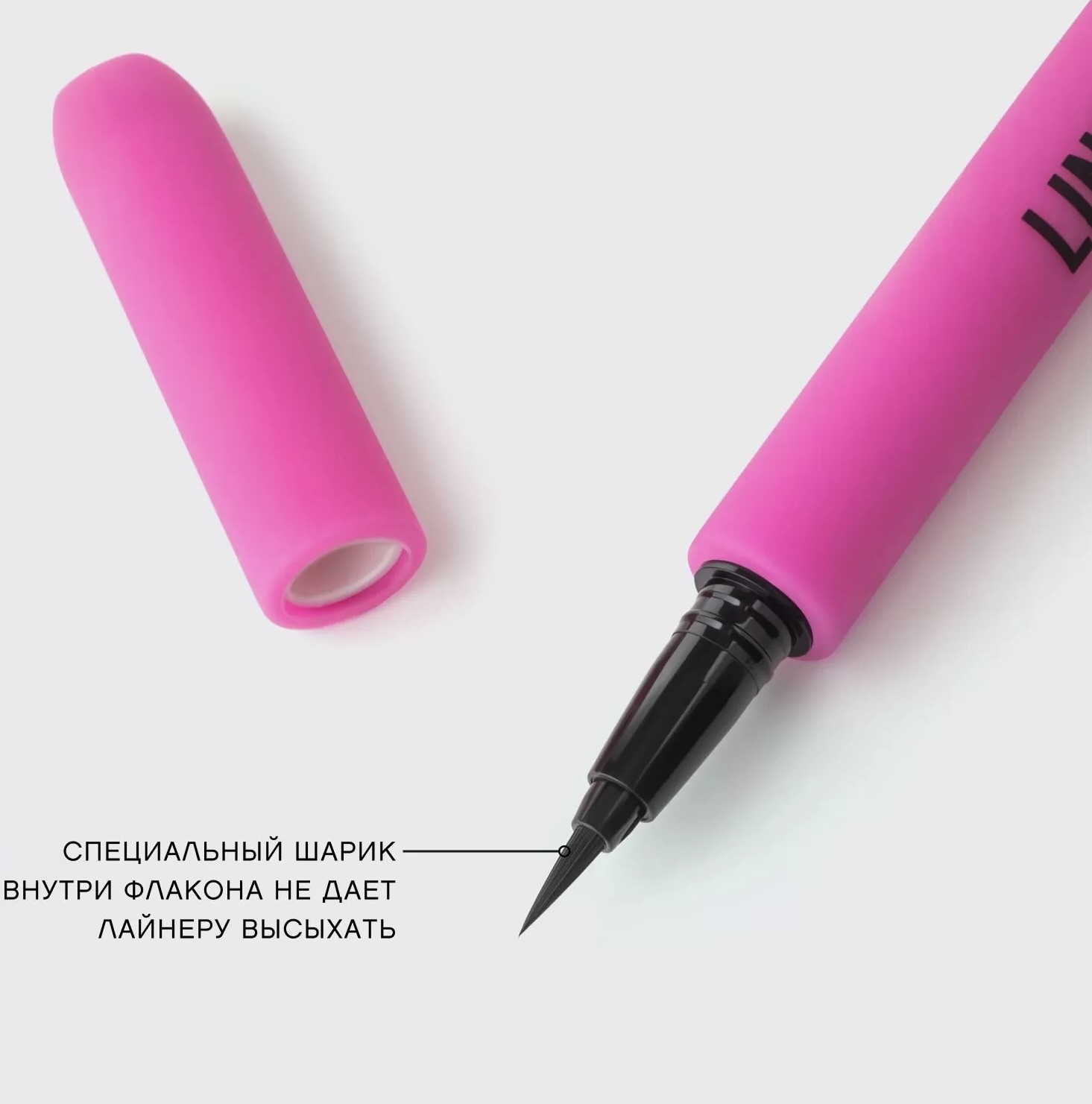 Подводка в мягком чехле легко скользит в руке, помогая уверенно дойти до самых ярких стрелок в любых обстоятельствах. В основе ее текстуры — современные полимеры, которые делают массу влагостойкой. Уникальность формулы в том, что подводка будет стойкой до тех пор, пока ты сама не захочешь смыть ее теплой водой без использования дополнительных средств. Внутри флакона есть специальный шарик, который не дает лайнеру высыхать: встряхни его перед применением.